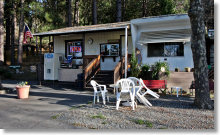 The Groveland Motel offers several types of lodging, including cabins, mobile homes, tents furnished with air mattresses and bedding, and campsites for travelers with their own tents. The cabins and mobile homes all have private baths, but the tents and campsites don't; there are shared bathrooms on the grounds for the campers.