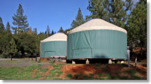 8 yurts: Sleeps 5; rates from $69 - $209, depending on season; yurts have coffee machine, microwave, refrigerator, and television, but no plumbing