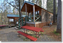 The KOA is primarily geared towards RV drivers and trailer towers, with 50 full-hookup sites, but does have other options available. There are 15 tent sites, 13 one-bedroom and 2 two-bedroom cabins without bathrooms, and 2 "Lodge" cabins with private bathrooms and kitchens. The property also has a few recreational amenities, including a swimming pool, a catch-and-release fishing pond, and, housed in a retired railroad caboose, a video arcade. There's also a small general store/ gift shop at the main desk.