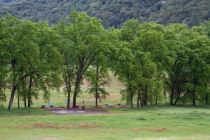 Best Time to Visit: There should be a window of a few weeks from mid April to early May, possibly shifting by a week or so from year to year, in which the grass is still green, the weather is mild, wildflowers are abundant, and the deciduous oaks have leafed out. This is the sweet spot. The area's generally less scenic in the winter, and high summer gets unpleasantly hot at this elevation. Though the oaks typically don't leaf out until April, the grass turns green and the wildflowers begin blooming in significant numbers during March, as a rule, so March and early April are good second choices. The park's photogenic Indian Warrior colony blooms somewhere from mid February to early March; see the wildflowers page for more details on the park's most notable species.