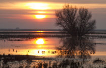 Scenery Summary: It's all about the birds here, and the numbers present in the winter are staggering - 15,000 cranes, 60,000 geese, 50,000 tri-colored blackbirds, and more than 200 species overall, from shy smaller birds like Virginia Rails to assorted large waterfowl (herons and egrets among the showiest of them) to raptors including owls, hawks, and eagles. Even if you don't care about birds, you'll enjoy watching Lesser Sandhill Cranes flapping about in the execution of their eccentric mating rituals - though they're certainly no weirder than a fraternity social - or thousands of geese lifting off at once in response to an eagle browsing overhead. Dedicated birders used to waiting hours for a species to appear may experience a kind of sugar overload at the embarrassment of riches here.
