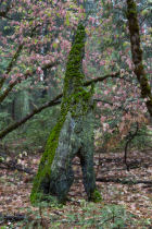 Parking: The Shadow of the Giants trail (currently closed) has a dirt lot at the trailhead that will hold half a dozen or so cars. If it fills up, an uncommon occurrence, you can park along the road. If you take the fork for the other trails instead, you'll find room for a couple cars at the interpretive center, which is also the Big Ed Tree trailhead. Shortly afterwards you'll pass a larger lot shared by the Graveyard of the Giants and Chimney Tree trailheads, and past that more parking for the Bull Buck trailhead. These four trailheads are only separated by a few hundred meters, so any place you find to park should suffice.
