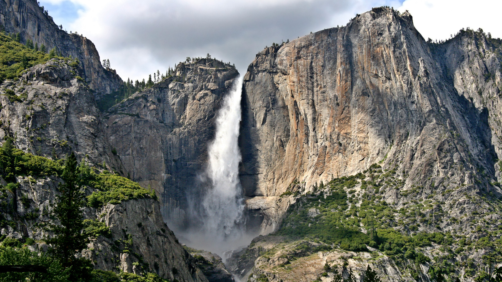 At 2,425 feet (739 meters), Yosemite Falls is the tallest waterfall in North America - more than ten times higher than Niagara. A thrill-seeking drop of water takes 80 seconds (at 20 mph) to fall from top to bottom, by which time it has almost certainly wet itself. There's a trail to the top of the falls that runs to the left of the falls; it leads to a viewing platform just above and to the left of the lip of the falls.