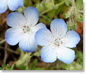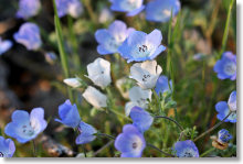 Flowering Season: February - June. Baby Blue Eyes is one of the earliest blooming wildflowers in the foothills.