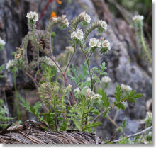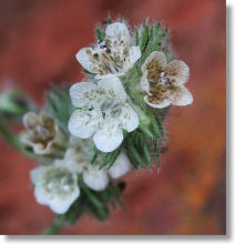 Caterpillar Phacelia is a staple of the Merced River Canyon west of Yosemite, joining with Live Forever to accessorize dry, rocky areas where other plants can't be bothered to settle. It's a reliable sight every spring along the Hite Cove trail, generally around the March/April boundary. You're far more likely to encounter it here or elsewhere in the canyon than inside the park itself, as it doesn't grow much above 4,000 feet.