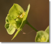 Euphorbia crenulata etmology: Euphorbia is named for Euphorbus, physician to Juba II, who was king of the ancient north African kingdom of Numidia. Sometime in the first century BCE, Euphorbus reputedly used a member of the genus to create an herbal remedy that cured Juba II of tummy problems. Crenulata is a variation of the word crenulate, which means "to have a margin with small, low teeth." In this case, it's describing the leafy bracts (also known as an involucre) that surround the flowers. Crenulate itself derives from the Latin word crena, meaning "notch," and if you look closely, you should be able to notice tiny notches or teeth along the edge of one of the bracts in the photo at the top of the page.