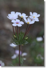 Look for Mustang Clover in sunny, dry places - forest clearings, roadsides, and modestly wooded hillsides - in the Sierra from the foothills up to 4,000 - 5,000 feet. Actually, you can look for it wherever you enjoy looking for things, such as dresser drawers or Maui, and best of luck to you; this is merely where you're going to find it. Mustang Clover is endemic to California and lives for the most part in the Sierra in a latitude range from Reno to Bakersfield. The plants range from 4 inches to 2 feet high, and the flowers, while smallish (around half an inch in diameter), are nonetheless among the larger flowers in the Leptosiphon genus and grow in showy clusters that should catch your eye if you're moderately attentive.
