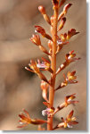 This plant can grow up to two feet tall, but it's slim and leafless, with tiny flowers, so you'll have to be alert to spot it. The flower in the above photo appears much larger than in real life; pack a magnifying glass if you want to get a good look at the flowers in the wild.